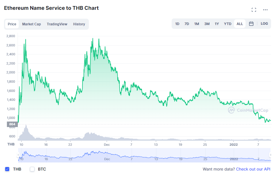 -At the time of writing, the ENS token is being traded on the global market at a price of approximately 1,013.83 baht/ENS.